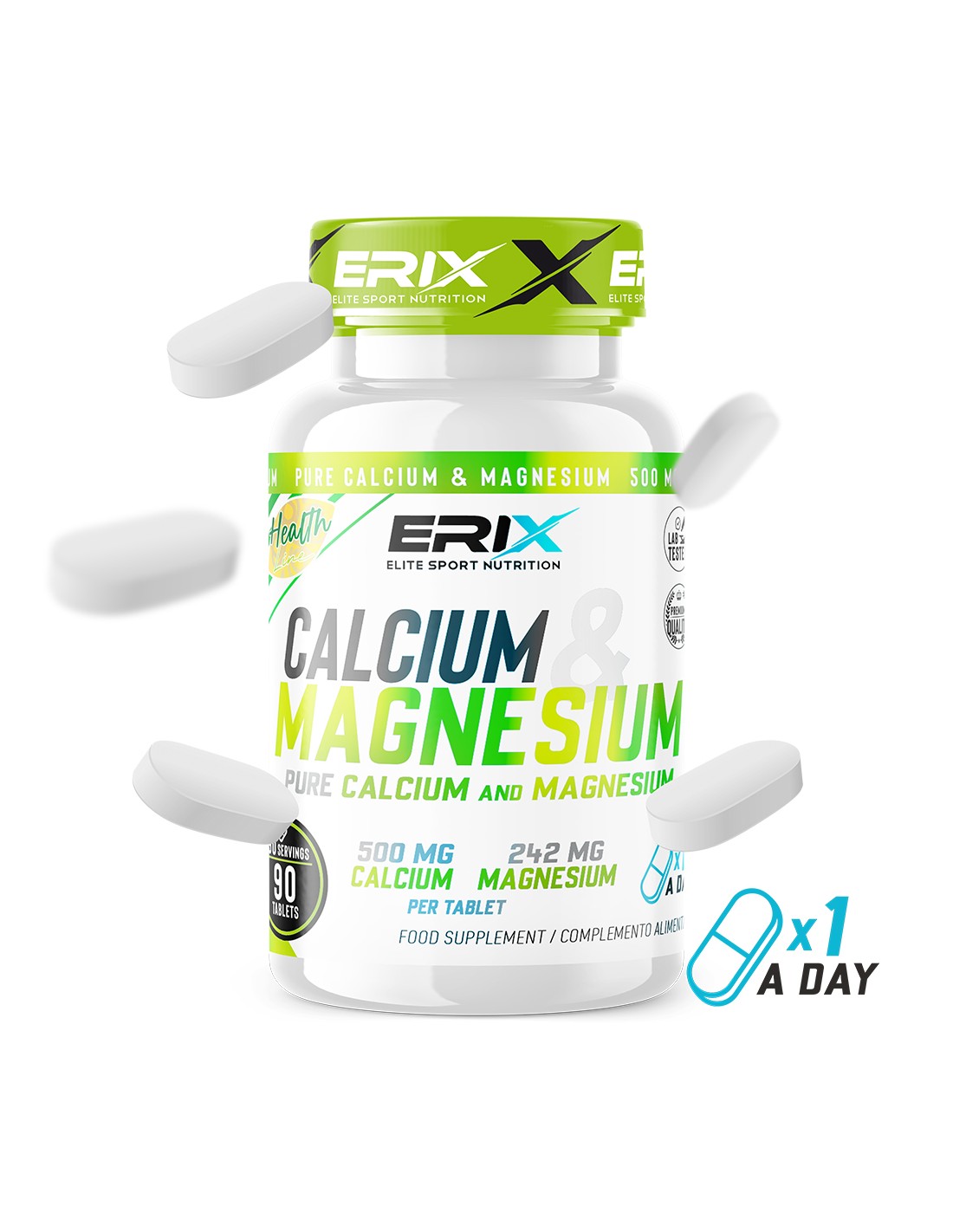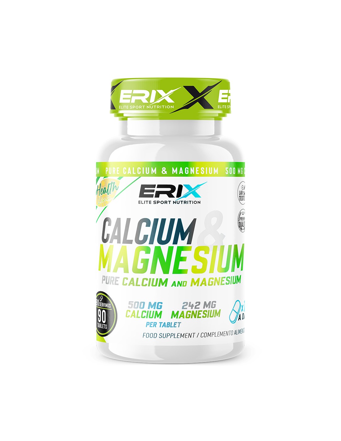 Desde ERIX NUTRICIÓN hemos elaborado este suplemento a base de calcio y magnesio. Dos minerales indispensables para el correcto funcionamiento del organismo, Además de tener un papel fundamental en mantener el bienestar de los huesos y articulaciones.