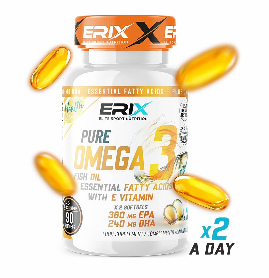 Pure OMEGA 3 de ERIX NUTRICIÓN gracias al aceite de pescado de gran calidad que incluye en su fórmula, incluye ácido eicosapentaenoico (EPA) y ácido docosahexaenoico (DHA) en una proporción 18:12.