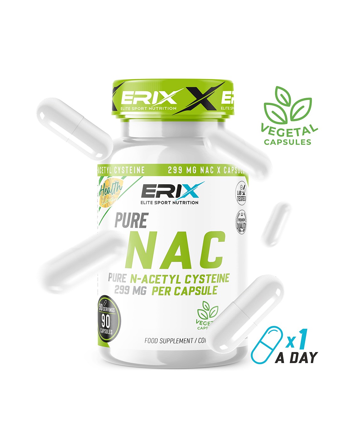 NAC de Erix nutrición es un suplemento basado únicamente en N-Acetil Cisteina como único ingrediente. El NAC es un potente antioxidante que ayuda a eliminar los radicales libres y un excelente protector hepático y cardiovascular.
