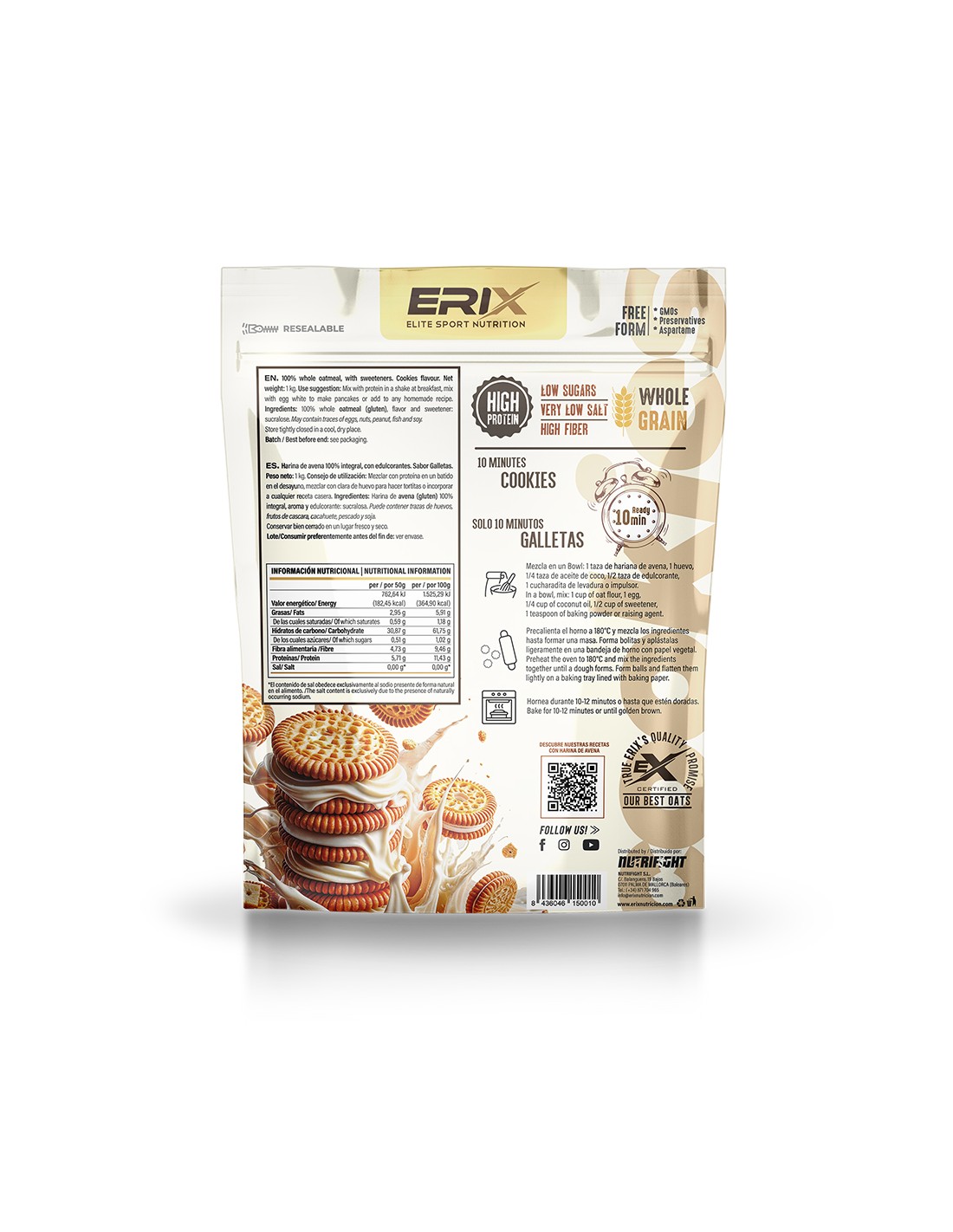 Si sumamos esto a su inigualable sabor, tenemos la combinación perfecta que te ayudará a cuidarte y a disfrutar de todas las recetas y preparados en los que utilices Instant Oat Flour de Erix nutrición.
