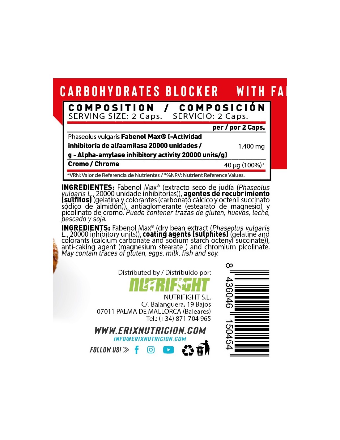 Carbs Blocker de Erix Nutrición es el complemento alimentario perfecto para acompañar los procesos de pérdida de peso por sus asombrosas propiedades: ¡Su estructura es capaz de bloquear un gran porcentaje de carbohidratos!