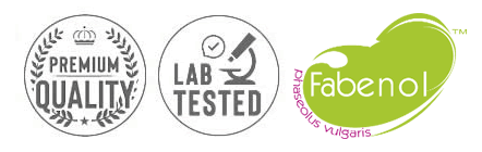 Fabenol®: es un extracto natural obtenido de las judías comunes (Phaseolus vulgaris) que inhibe la enzima alfa-amilasa, responsable de la digestión del almidón procedente de la dieta. ¡1g de Fabenol® inhibe la digestión de 300g de almidón! Además, es totalmente apto para vegetarianos y veganos. Así mismo, ha sido enriquecido con Cromo.