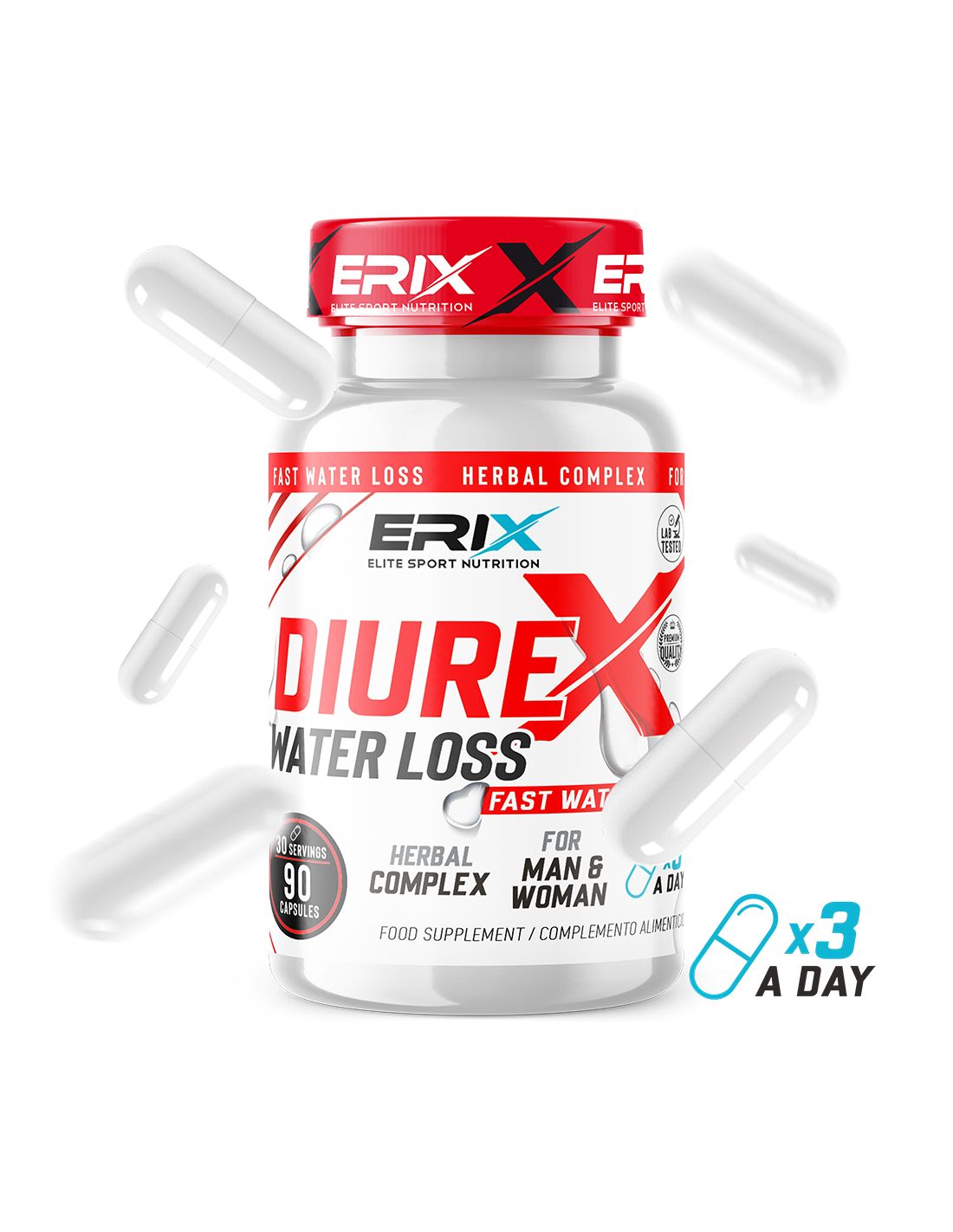 Además de los mejores extractos, hemos añadido N-Acetil L-carnitina y L-tirosina, haciendo de DIUREX wáter loss de Erix nutrición un producto aún más completo.