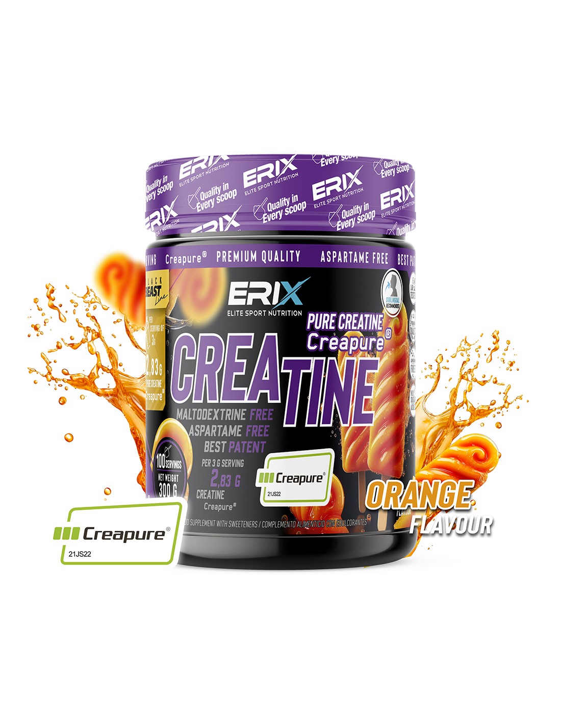 La Pure Creatina Creapure® de Erix Nutrición nos asegura un 99,8% de pureza gracias a Creapure®, la patente de creatina monohidrato con la más alta denominación de calidad, eficacia y seguridad.
