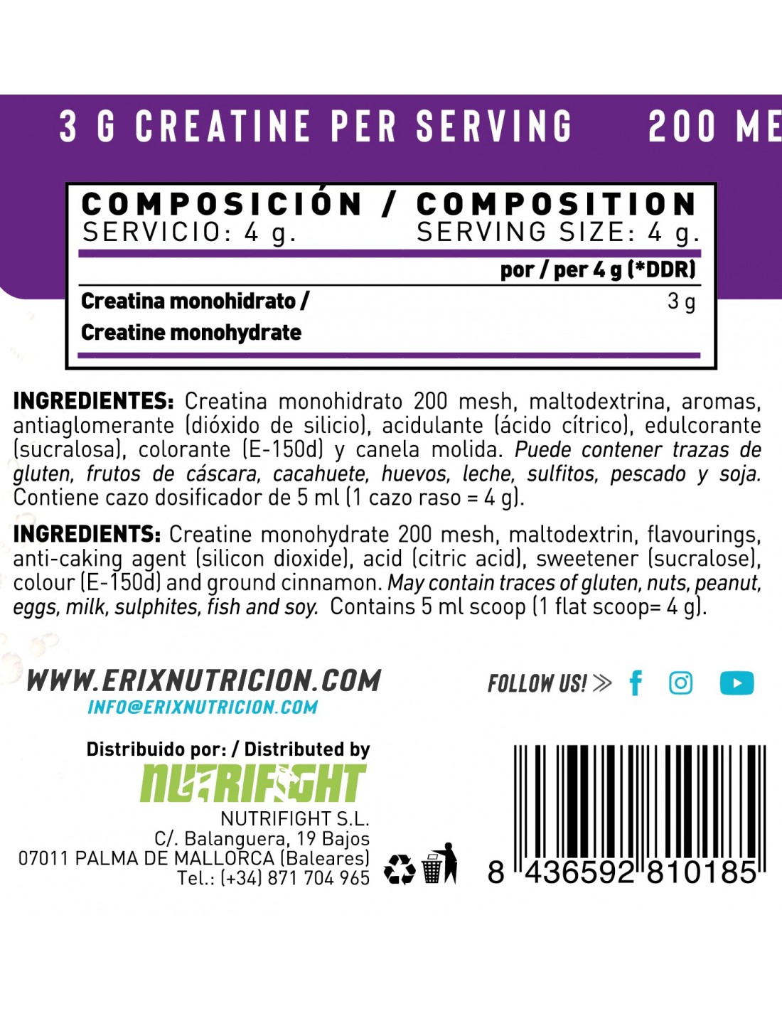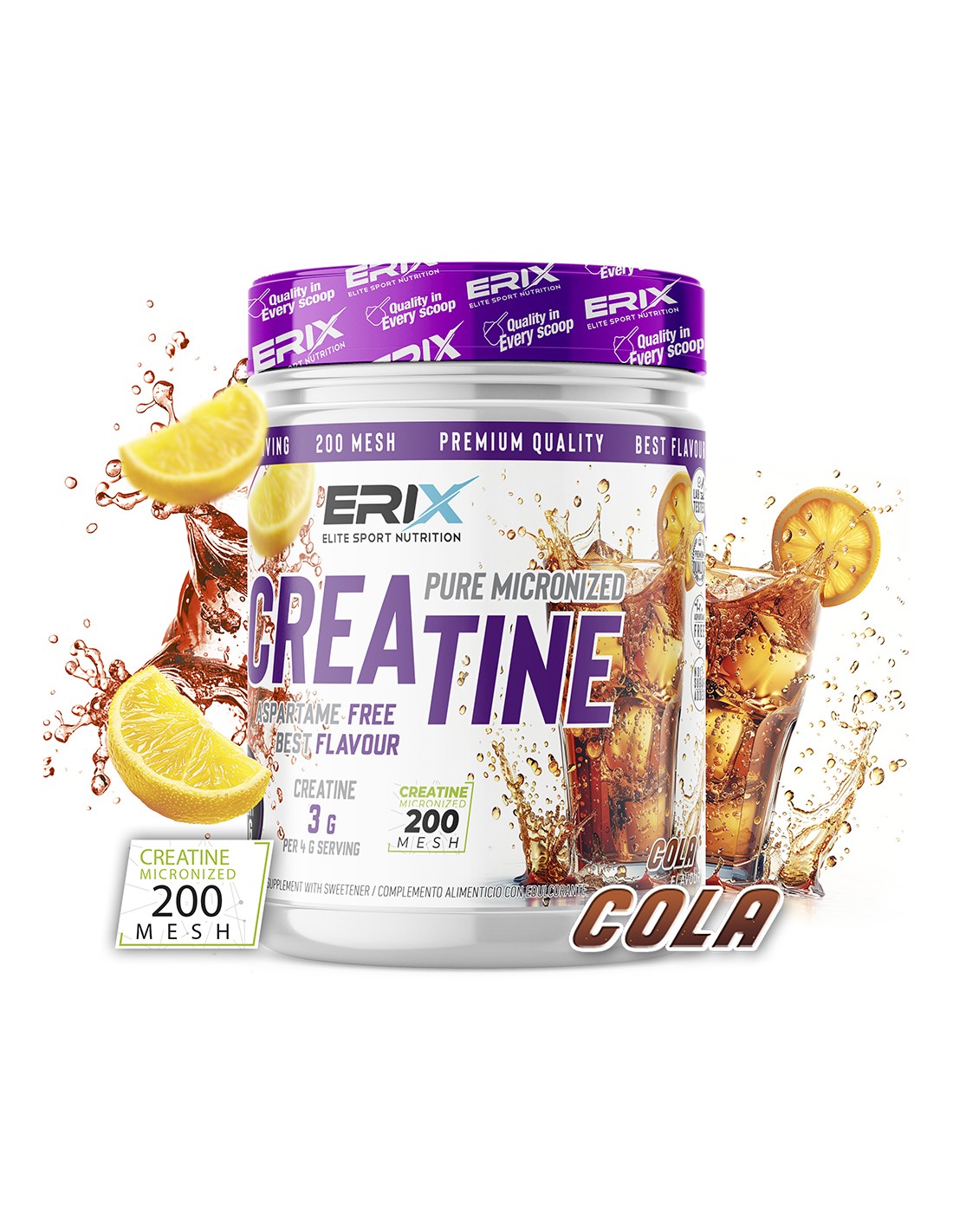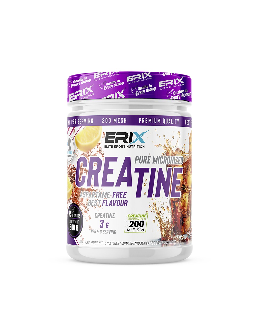 - La Creatina mejora el rendimiento físico en series sucesivas de ejercicios breves de alta intensidad (según la EFSA) efecto que se logra con una ingesta diaria de 5 g. Por todo esto, en Erix Nutrición hemos creado Pure Micronized Creatine, estudios sugieren que la forma más estable de consumir la creatina sería en forma de solución, y Pure Micronized Creatine de Erix Nutrición, gracias a su forma micronizada, consigue una mayor dilución para una mayor efectividad.