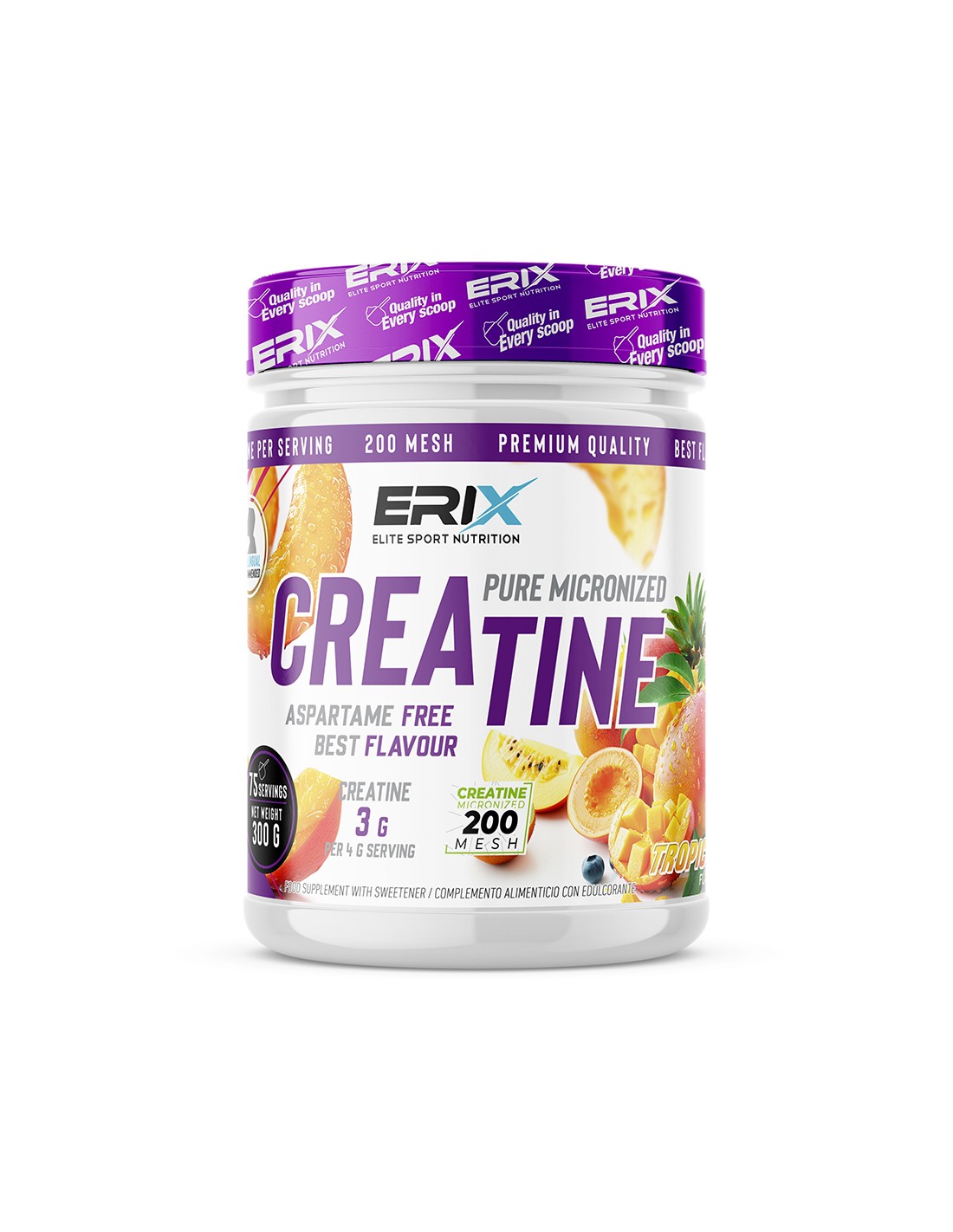 - La Creatina mejora el rendimiento físico en series sucesivas de ejercicios breves de alta intensidad (según la EFSA) efecto que se logra con una ingesta diaria de 5 g. Por todo esto, en Erix Nutrición hemos creado Pure Micronized Creatine, estudios sugieren que la forma más estable de consumir la creatina sería en forma de solución, y Pure Micronized Creatine de Erix Nutrición, gracias a su forma micronizada, consigue una mayor dilución para una mayor efectividad.