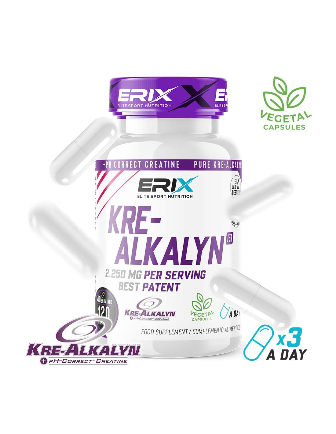 Pure Kre-Alkalyn ® de Erix nutrición es un producto formulado exclusivamente por creatina Kre-Alkalyn®, una creatina con una tecnología patentada que presenta un pH corregido, el cual tiene como objetivo incrementar su estabilidad y hacerla más utilizable.
