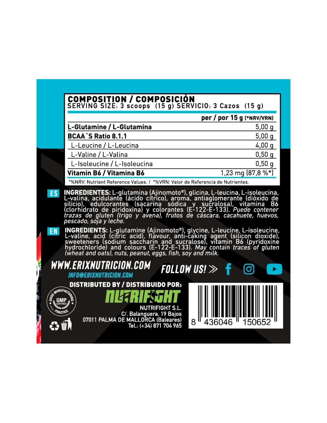 - Mejorar la recuperación muscular: Tomar GLUTAMINE AJINOMOTO de ERIX NUTRICIÓN + Batido de ISO ADVANCED PLUS después de entrenar.