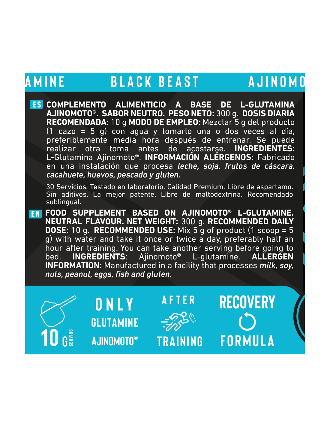 - Modo de empleo: Mezclar 5 g del producto (1 cazo) con agua y tomarlo una o dos veces al día, preferiblemente media hora después de entrenar. Se puede realizar otra toma antes de acostarse.