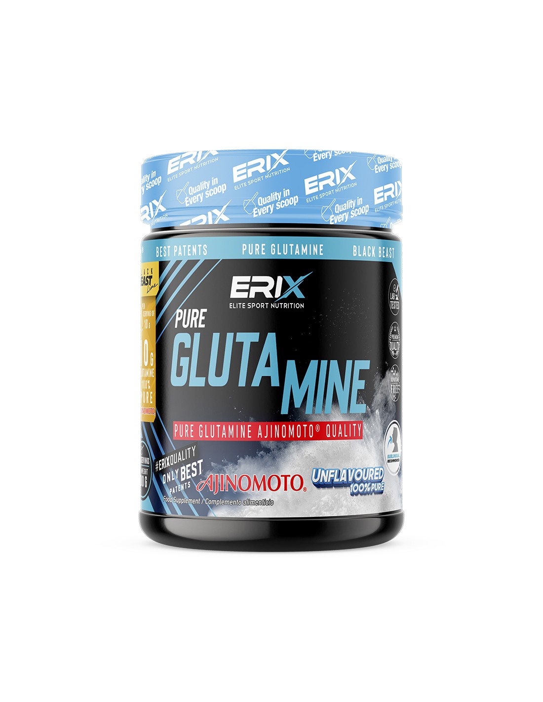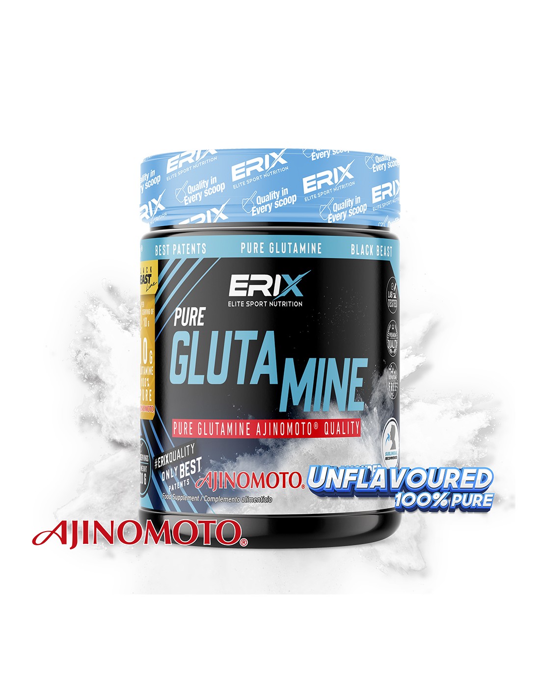 GLUTAMINE AJINOMOTO solo contiene L-glutamina AJINOMOTO®. La patente AJINOMOTO es reconocida a nivel mundial ya que llevan a cabo cientos de estudios que dan como resultado un avance tecnológico continuo en sus productos y una calidad difícil de superar.