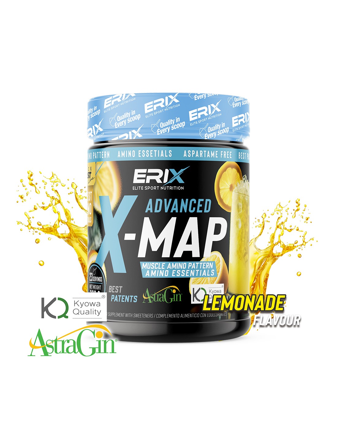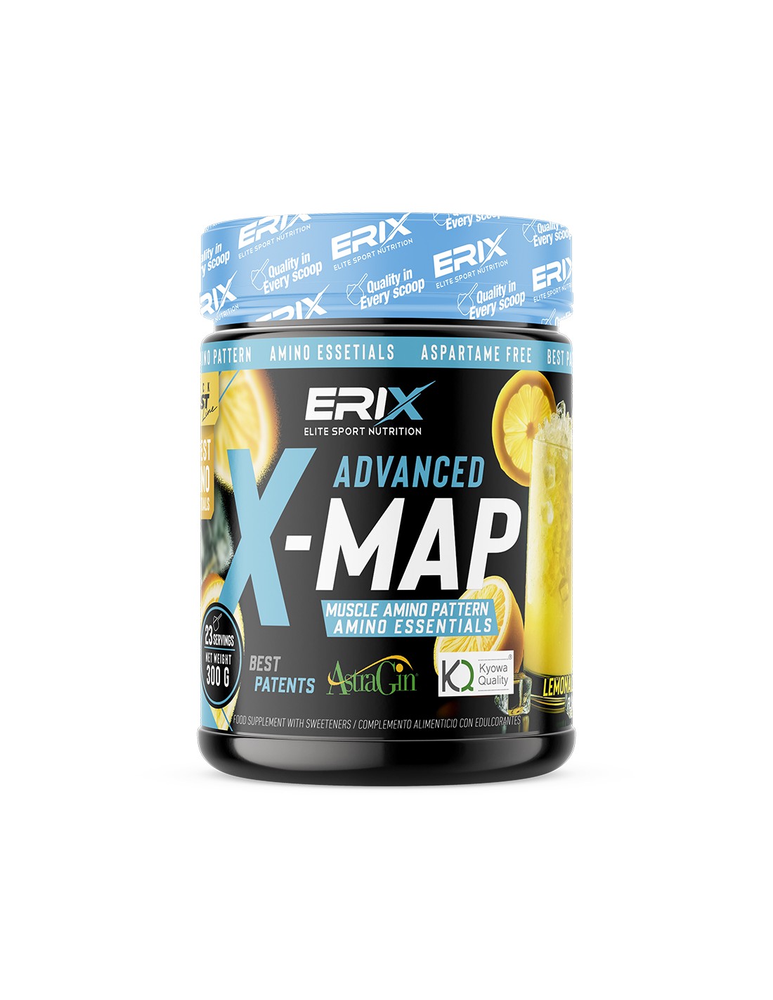 X-MAP Muscle amino Pattern de Erix nutrición es un suplemento en polvo que contiene una combinación maestra de 8 aminoácidos esenciales con calidad kyowa®, con astragin® y vitamina b6, con el fin de ser el soporte ideal para deportistas que sufren un intenso desgaste muscular.
