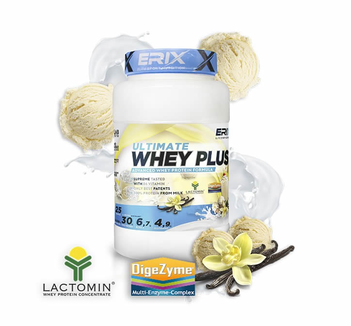 En la WHEY PLUS ULTIMATE de ERIX NUTRICIÓN los valores de la proteína que usamos son: