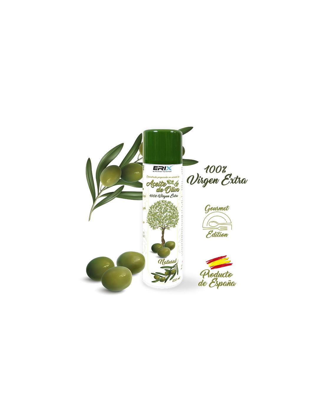 El Aceite De Oliva En Spray de Erix Nutrición de máxima calidad con 0,3º acidez máxima y prensado en frío.