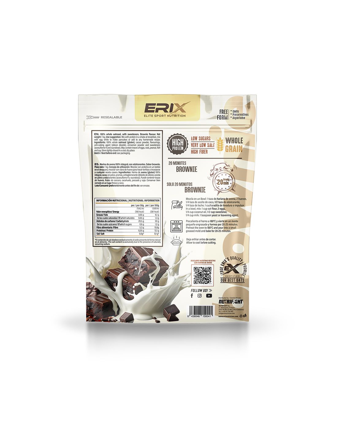 Instant Oat Flour de Erix nutrición es el alimento perfecto para el día a día o para completar tu rutina alimentaria con una fuente de hidratos que no solo resulta deliciosa, sino que es de lo más saludable gracias a su composición nutricional.