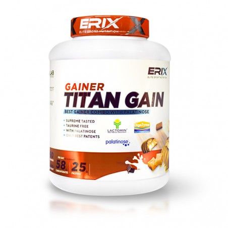 ERIX NUTRICIÓN te trae TITAN GAIN, un producto que reúne lo mejor de la proteína y de los carbohidratos, para conseguir un equilibrio perfecto y ayudarte a lograr tus objetivos de una forma rápida, efectiva y sin renunciar al mejor sabor del mercado.