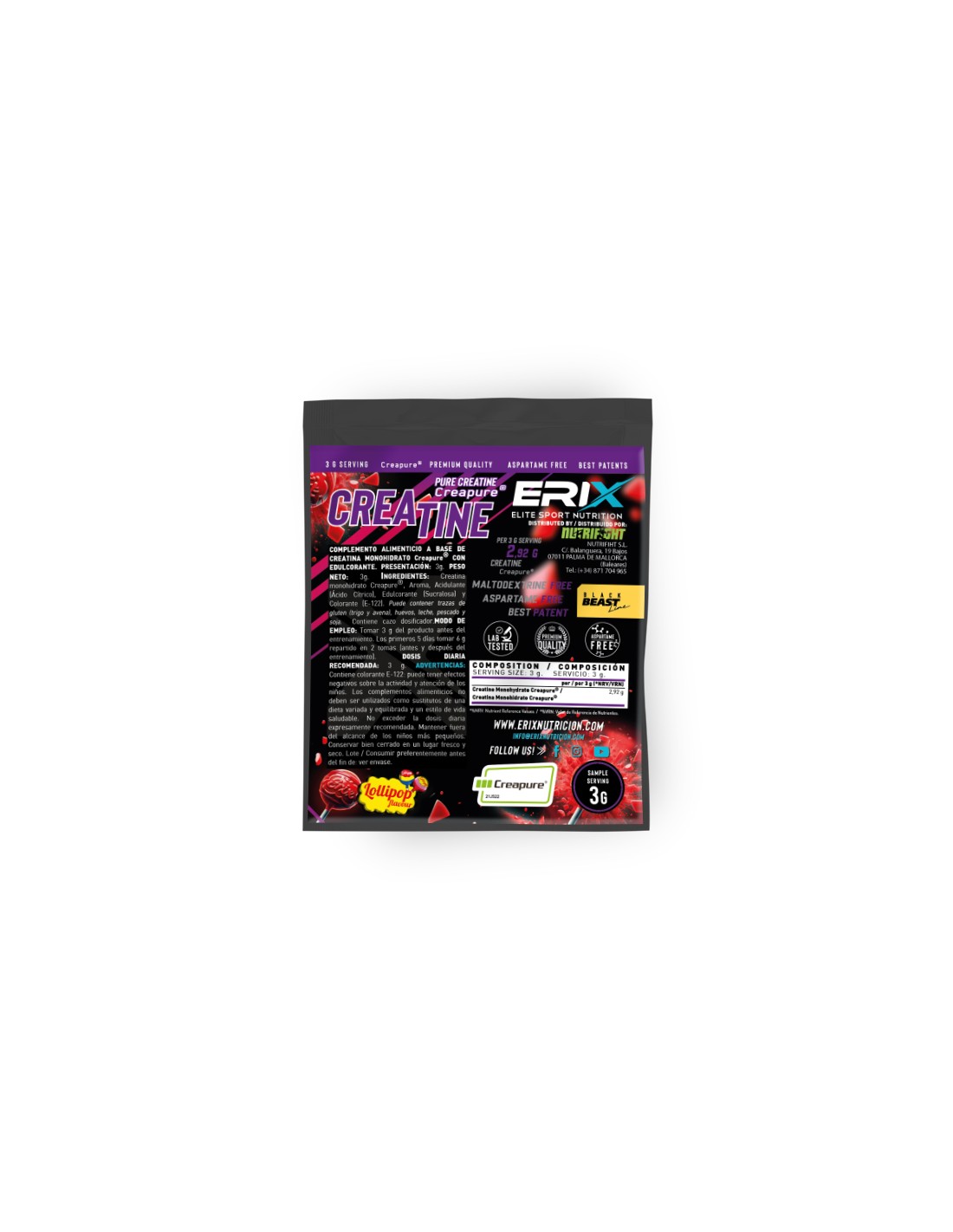 En Erix Nutrición hemos decidido formular una Creatina con los mayores estándares de pureza y calidad, siendo su ingrediente Creatina Creapure® y aromas. El sello Creapure® asegura que está fabricado con los mayores controles de calidad, proporcionando una creatina sin impurezas y de una calidad inigualable.