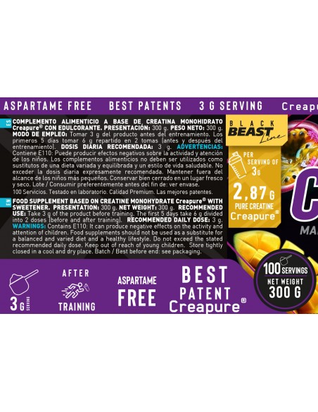 Su aporte ayuda a mejorar el rendimiento del entrenamiento, retrasando la aparición de fatiga y mejorando la recuperación muscular. Además, la Creatina tiene el poder de proporcionar al músculo un mayor volumen, fuerza, resistencia muscular, aumento del rendimiento y mayor capacidad de recuperación.