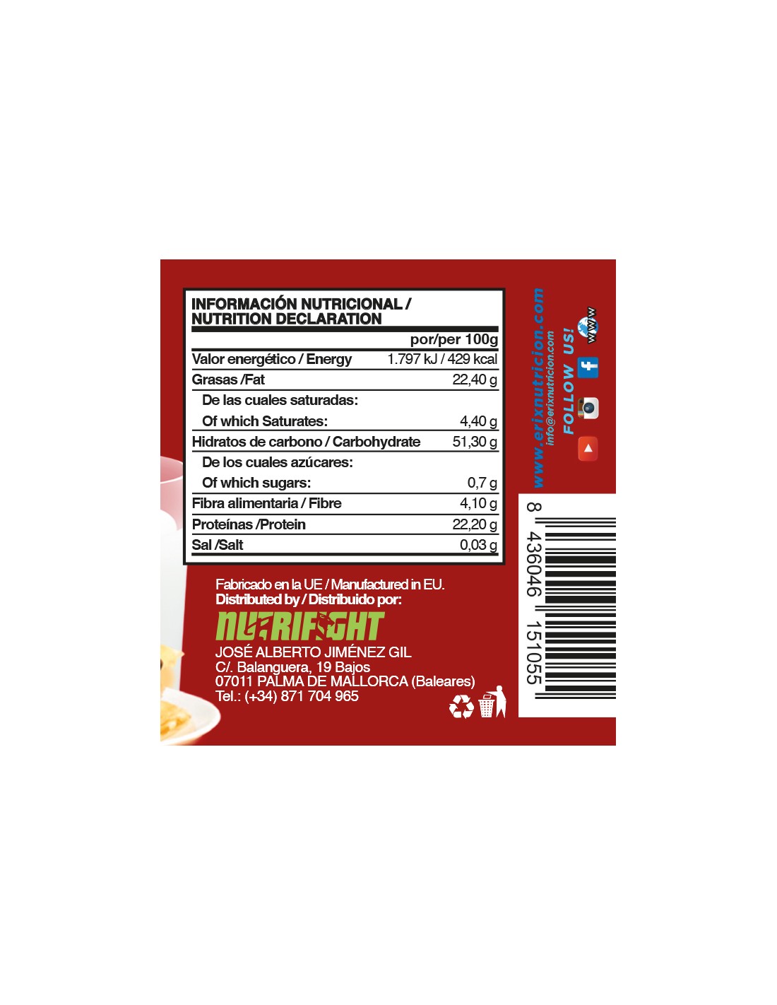 Las cremas dulces de ERIX NUTRICIÓN son un aliado perfecto para cuidar tu alimentación y hacerla mas saludable, al usar nuestras cremas puedes darte un capricho dulce sin pensar en las consecuencias o sabiendo que no repercutirá en tu físico. Y no solo eso, sino que además te aportaran energía y nutrientes proteicos. Es una excelente manera de endulzar tus momentos sin arrepentimientos. Todas nuestras cremas proteicas están elaboradas con ingredientes de altísima calidad y unido a sus formulaciones conseguimos unas cremas con alto contenido en proteína, muy bajos niveles de grasas y azúcar y con unos sabores excelentes, todo lo necesario para que puedas darte un capricho. ¡Te harás adicto a nuestras cremas!