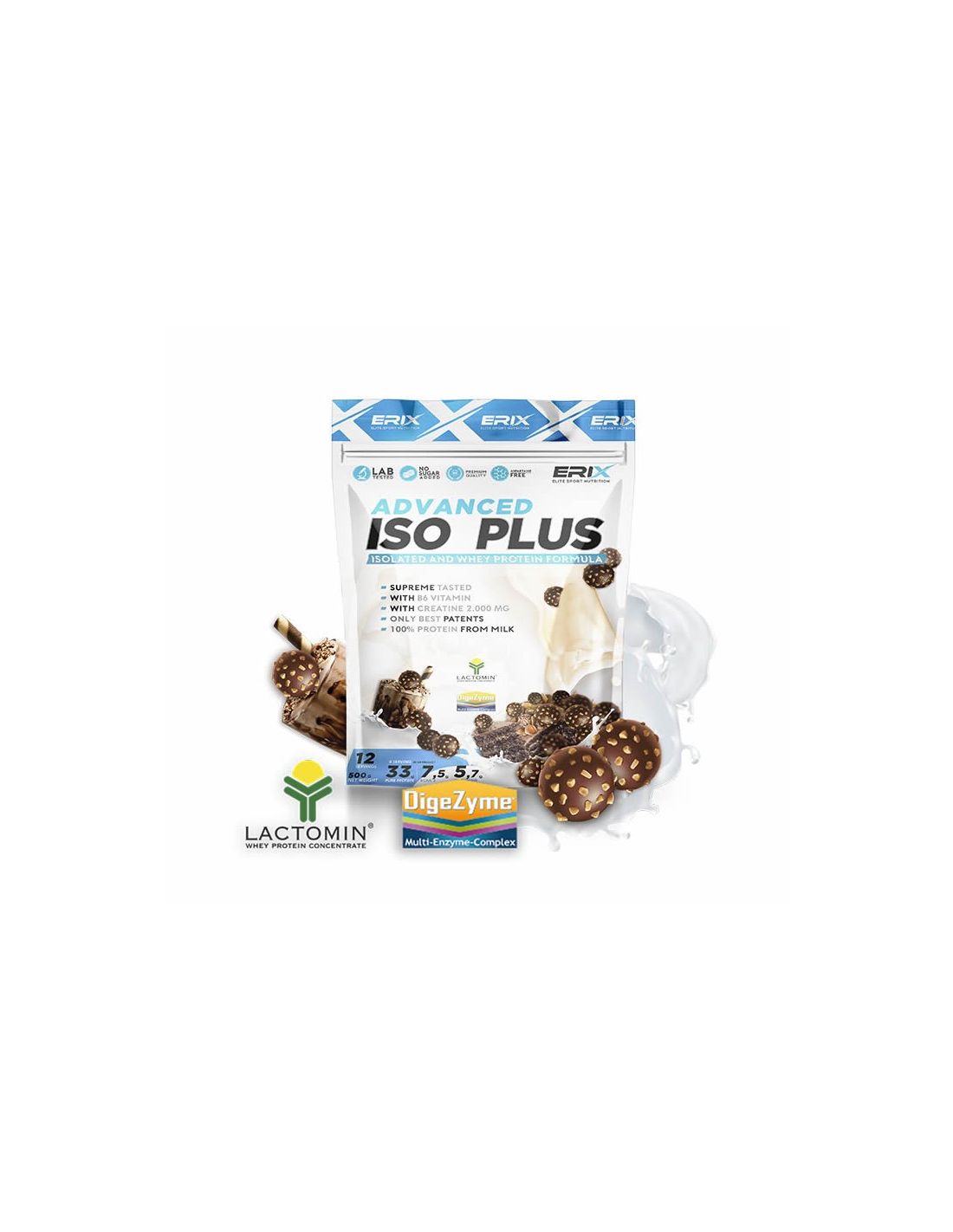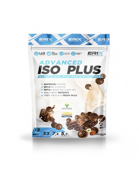 ISO ADVANCED PLUS una formula proteica enriquecida con vitaminas, creatina, aminoácidos para una total recuperación muscular. Disponible en 4 deliciosos y nutritivos sabores: vainilla con avellana, chocolate, oreo y cookies.