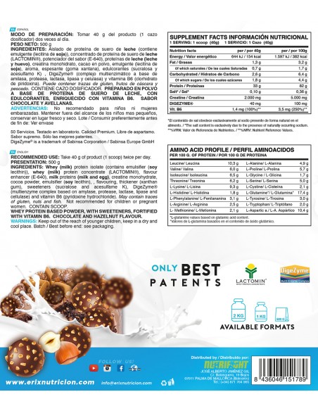 En ERIX NUTRICIÓN apostamos por hacer tu alimentación más eficiente, y por ello complementamos la WHEY PLUS ULTIMATE con Vitamina B6 y con DigeZyme®.