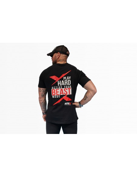 Con su diseño en negro clásico y el logo distintivo de Erix Nutrición en el frente, esta camiseta te inspira a abrazar un estilo de vida activo y saludable. En la parte trasera, el lema "Play Hard, Activate Your Beast Mode" te motiva a desatar tu potencial máximo en cada actividad.